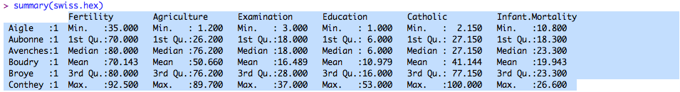 + cols=c("Fertility", "Agriculture", "Examination", "Education",