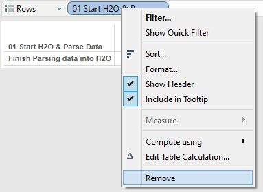 Move “01 Start H2O & Parse Data” to the Row shelf.