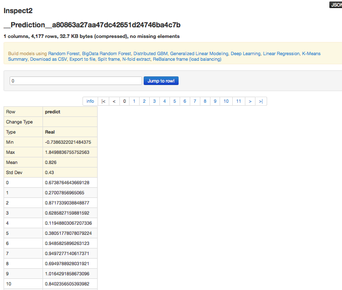 - Click the Predict! link at the top of the GLM results page, or go to the drop-down Score menu and select Predict.