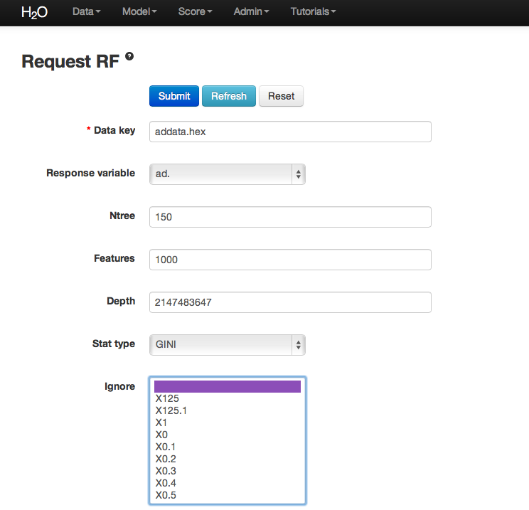 - Parsing data into H2O generates a .hex key (“data name.hex”).