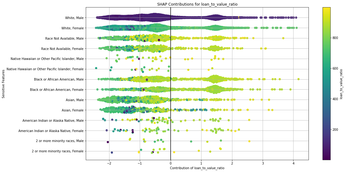 This kind of SHAP plot can be obtained using model.fair_shap_plot/h2o.fair_shap_plot.