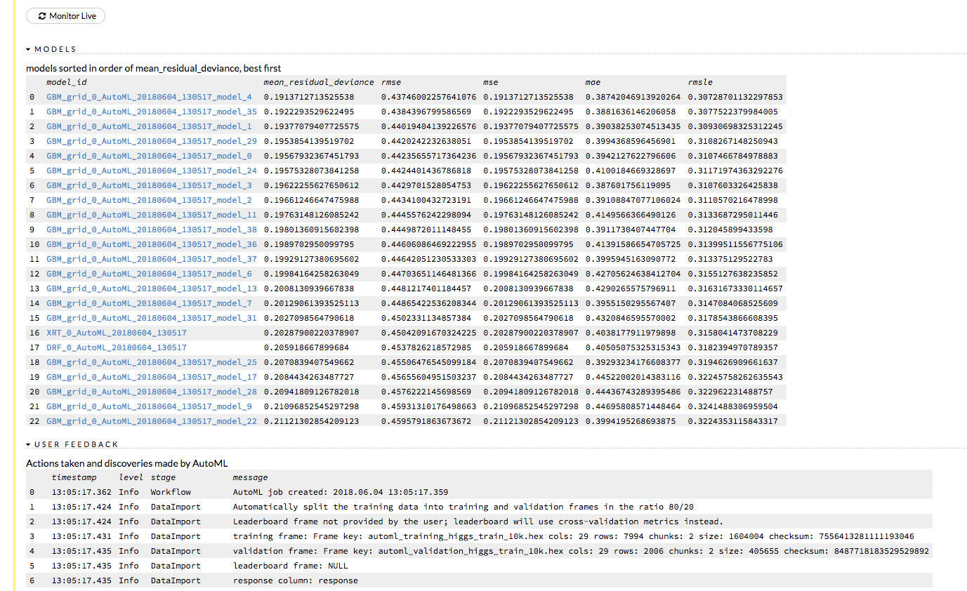 Flow’s hybrid user interface seamlessly blends command-line computing with a modern graphical user interface. However, rather than displaying output as plain text, Flow provides a point-and-click user interface for every H2O operation. It allows you to access any H2O object in the form of well-organized tabular data.